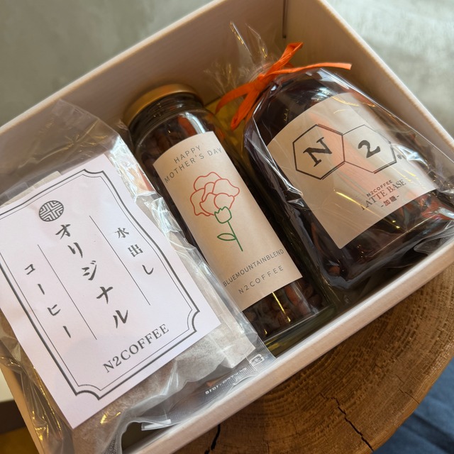 母の日の贈り物予約受付中 ・送料は地域別にかかります ・店頭での受け取りの場合はライン公式よりご予約ください ・〆切 → 5月3日(数が多いと早めに締め切ります) ・発送 → 5月6日(5月7.8.9日到着) オプションにて紙袋お付けできます お母さんに直送ご希望の場合は 母の日当日5.10到着指定可能です 内容- ①ブルーマウンテンブレンド 1pack ②ブルーマウンテン 瓶 60g (4-6杯分) -オプションより選択してください(豆・粉) ③ラテベース(加糖) 水出しコーヒーパック ④オリジナルブレンド 1pack ⑤インドネシア 1pack 納品書や金額の分かる物は一切入っておりません ヤマト宅急便にて60サイズでお送ります